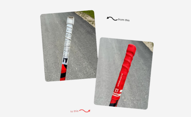 - RocketGrip made of materials that do not damage gloves compared to regular hockey tapes