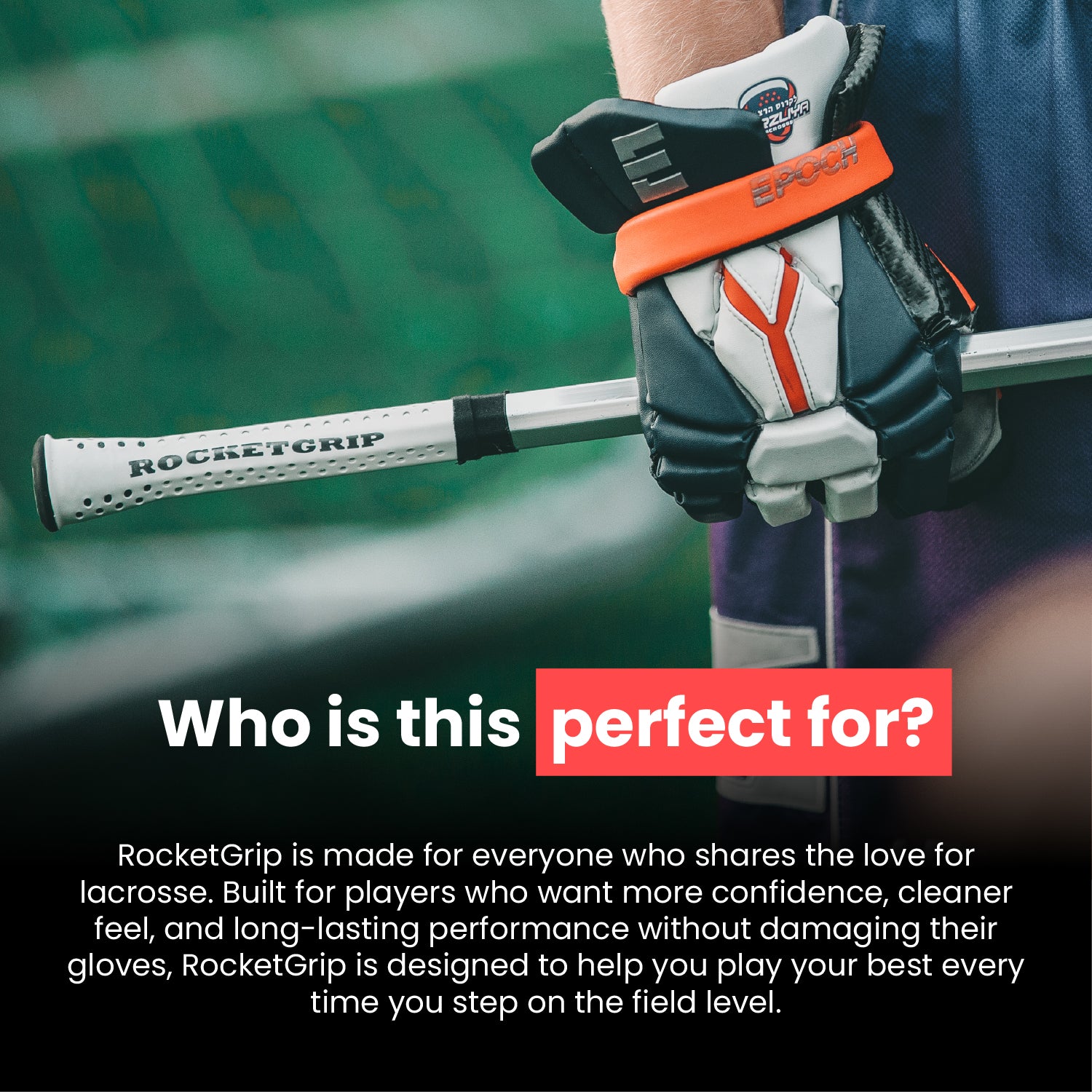 - RocketGrip is made of materials that do not damage gloves compared to regular lacrosse tapes (no glue)